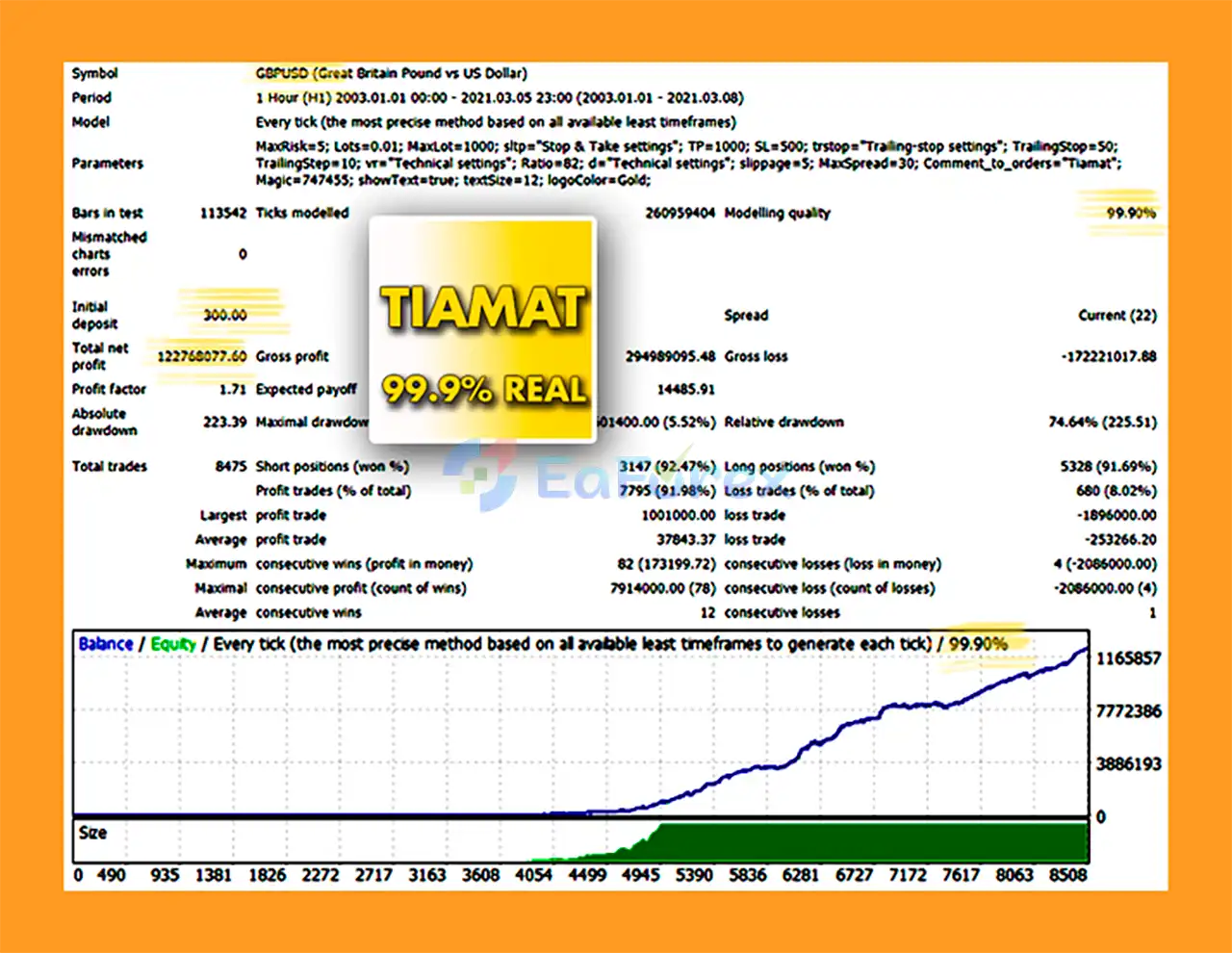 EA Tiamat MT4 offers intelligent trade management, dynamic profit protection, and proven 99.9% backtest performance. It’s beginner-friendly, requires no manual setup, and provides consistent returns with strong risk control.