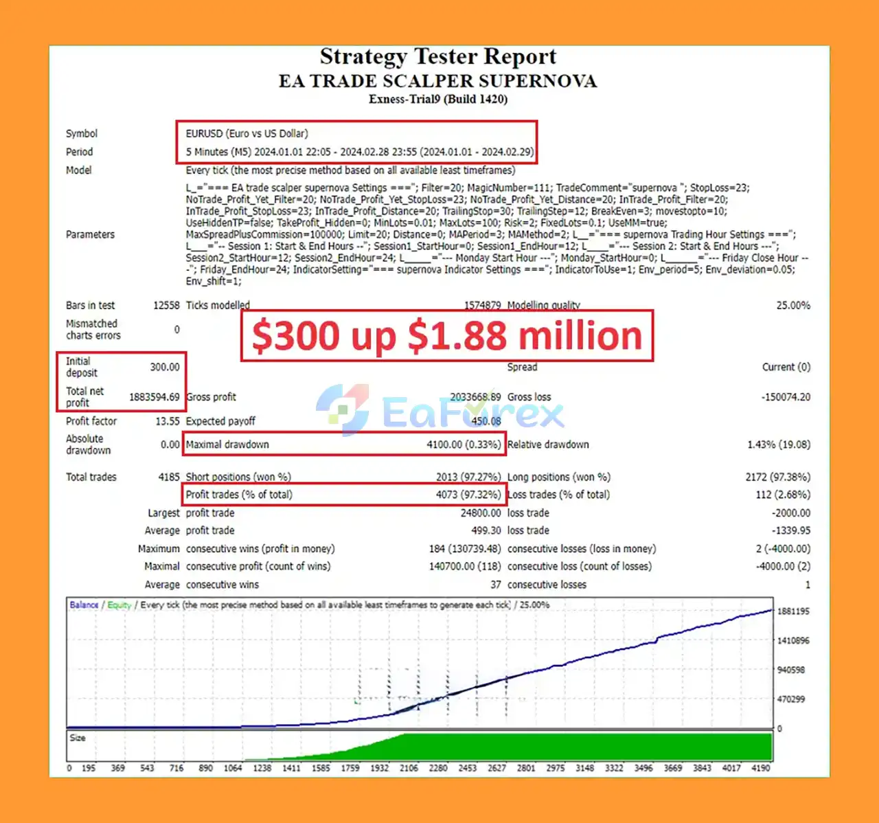 EA TRADE SCALPER SUPERNOVA MT4 Backtest Reuslts