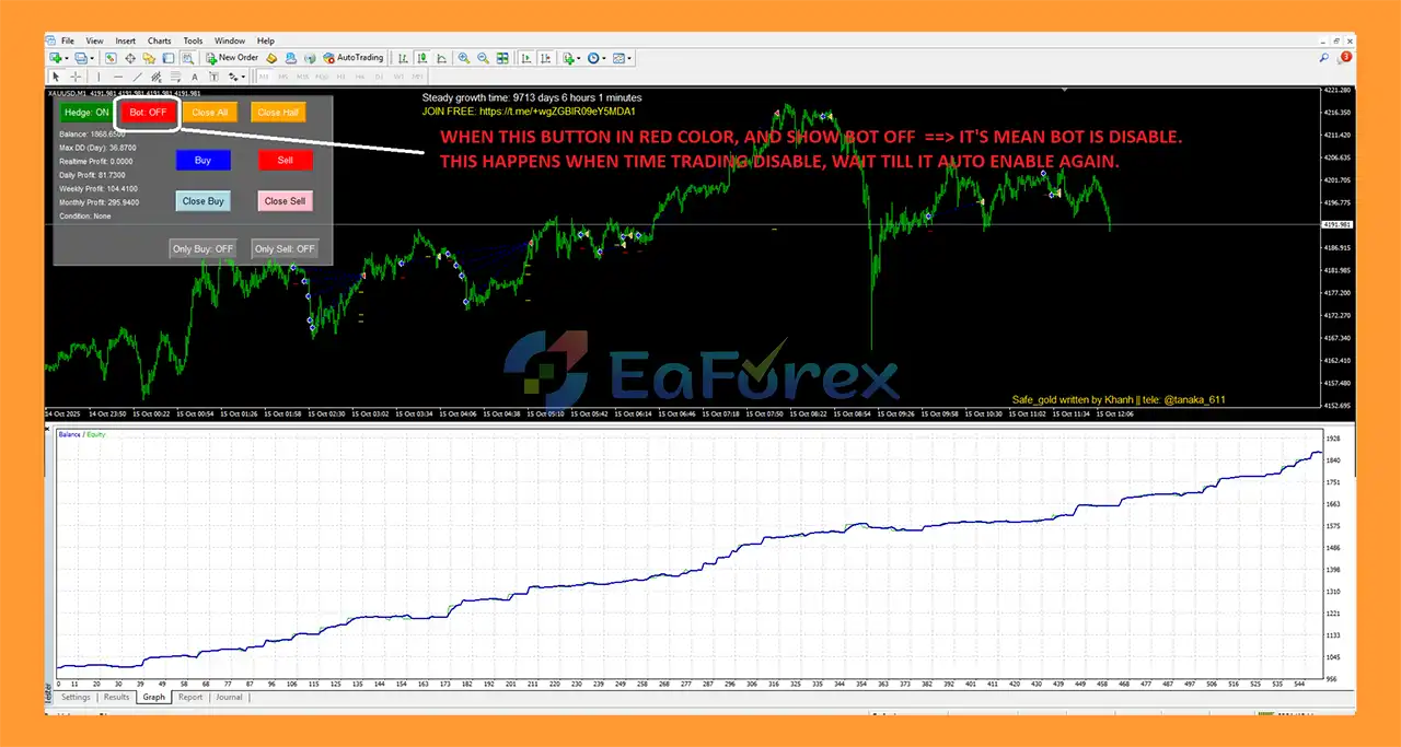 Easy Gold Pro EA MT4 performs best during Asian session, early European session, and late US session, where gold often enters sideways or low-volatility phases.