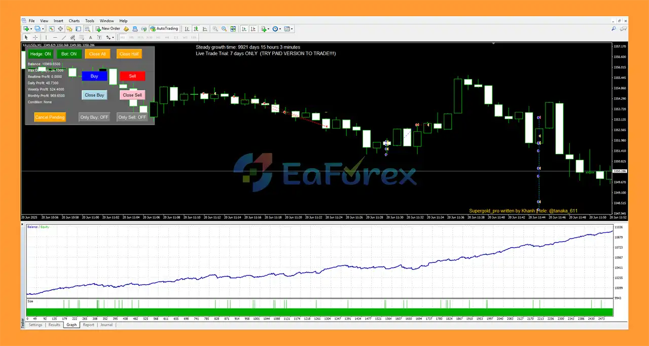 Easy Gold Pro EA MT4 is a fully automated scalping Expert Advisor designed exclusively for XAUUSD (Gold) on the M1 timeframe. The system is engineered to operate only during small sideways market conditions, where price consolidates with low volatility. Using real-world trading logic, the EA identifies safe ranging zones and manages trades through intelligent DCA, trailing, and profit-locking mechanisms. Easy Gold Pro focuses on fast cycles, controlled exposure, and precise trade management rather than aggressive trend chasing.
