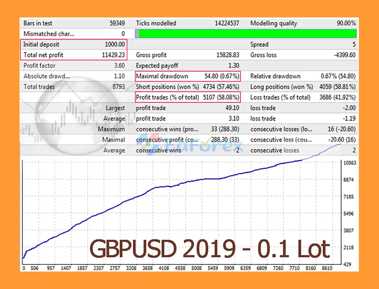 GBP/USD: $11,429.23 net profit, 58.08% win rate, 0.67% max drawdown