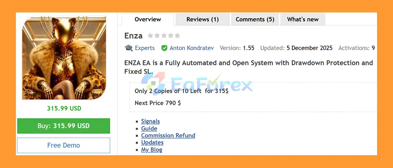 • Flagship Product: Enza EA MT5 is rated as the best performing product of the year.