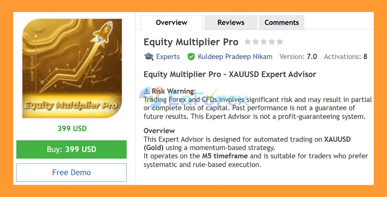 • Notable Products: Equity Multiplier Pro EA, Gold Rocket HFT EA and other advisors.