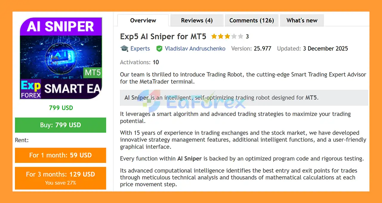 Exp5 AI Sniper for MT5 Review
