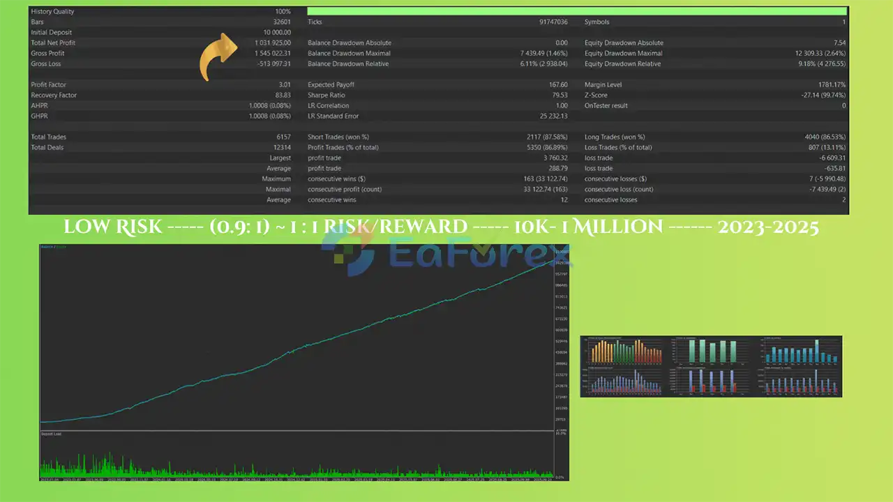 Low Risk: $1.03M profit, 86.89% win rate, 1.46% max drawdown