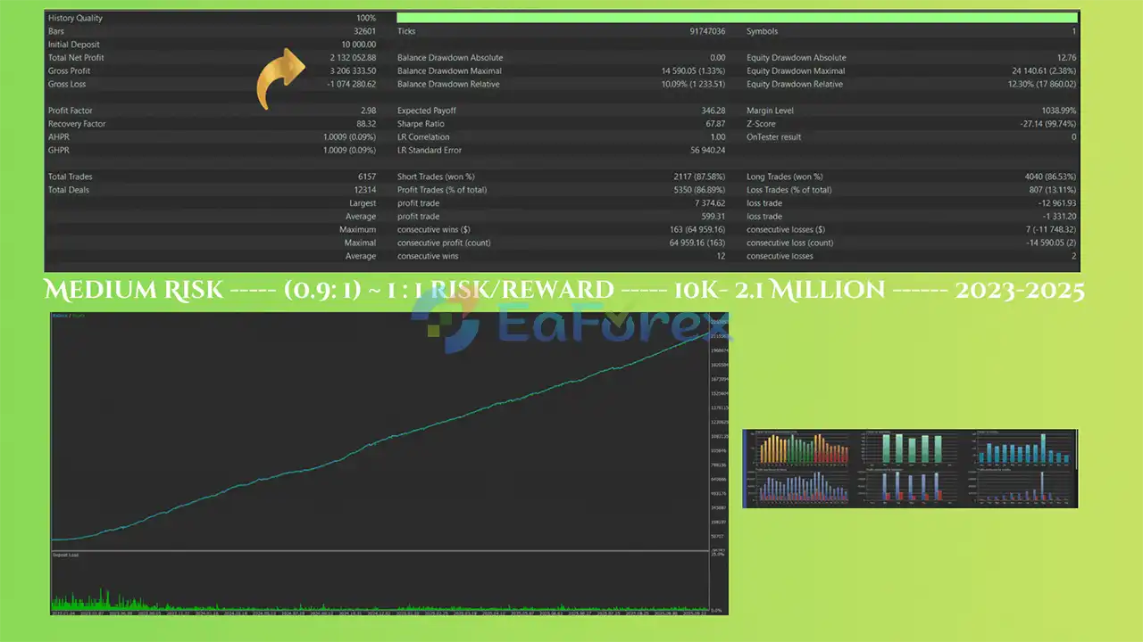 Medium Risk: $2.13M profit, 86.89% win rate, 1.33% max drawdown