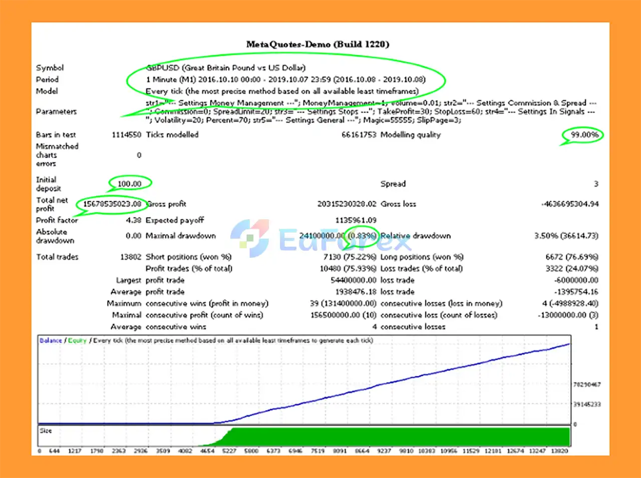 The EA uses a high-frequency trading (HFT) strategy combined with volatility-based entry signals. It focuses on executing fast trades during active market conditions while controlling costs through spread and commission analysis.