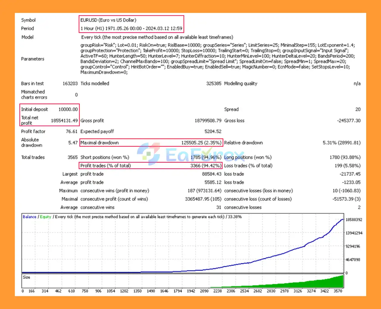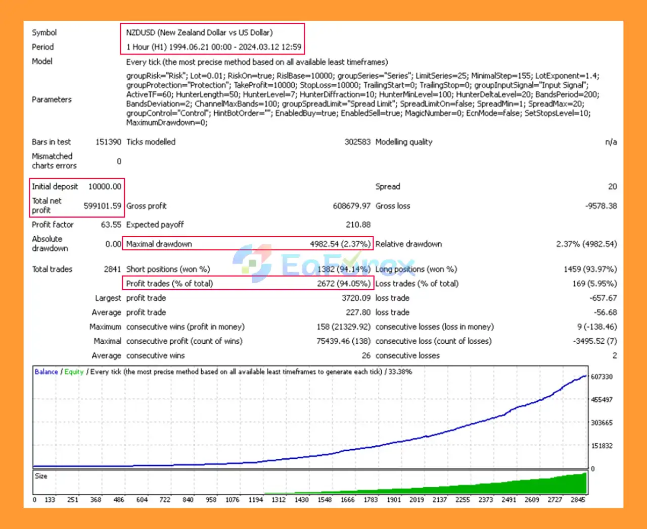 7. What are the backtest results of Forex FalconF4 EA MT4?