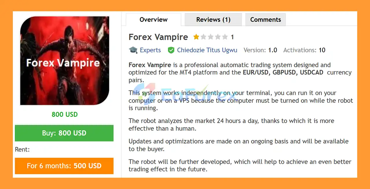 Forex Vampire EA MT4 Reviews