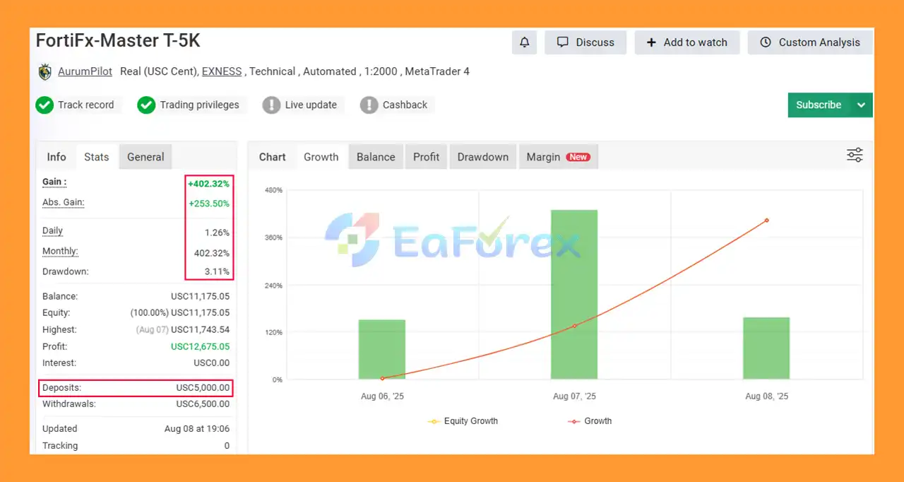 FortiFx EA MT4 is a MyFxBook-verified automated XAUUSD trading robot using swing strategies, trend filters, trailing stops & low-risk drawdown control.