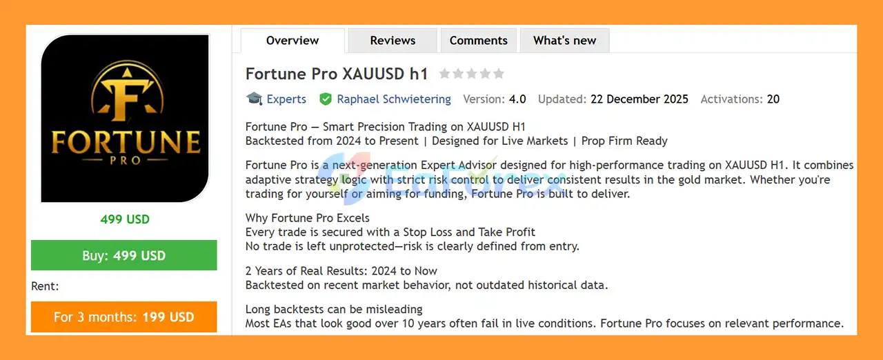 Fortune Pro XAUUSD H1 MT5 is a premium automated Expert Advisor designed for Gold (XAUUSD) on the 1-hour chart, using advanced algorithms to convert gold market volatility into structured trading opportunities.