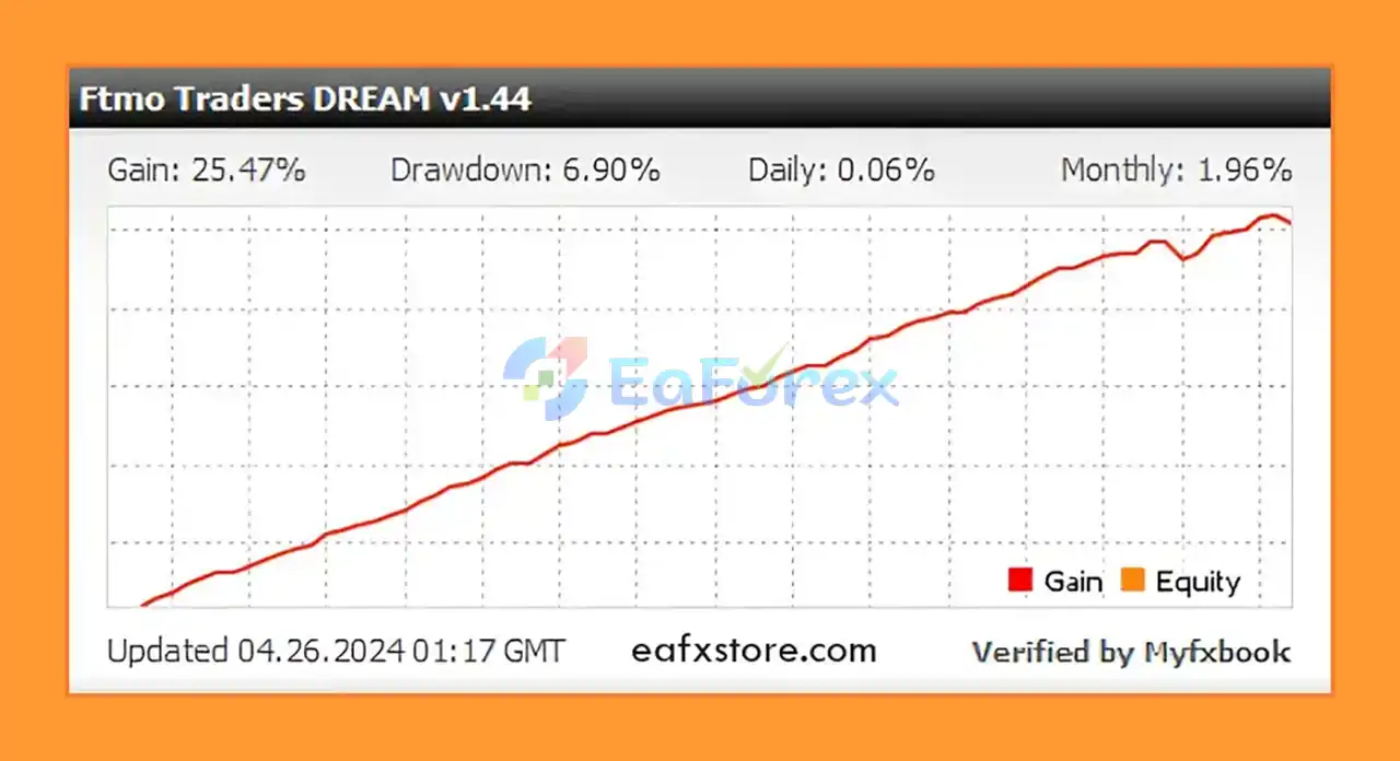 FTMO EA Passing Pack MT4 is a high precision EA, optimized for EURUSD with dual strategy and flexible risk control. Profit performance verified by Myfxbook.
