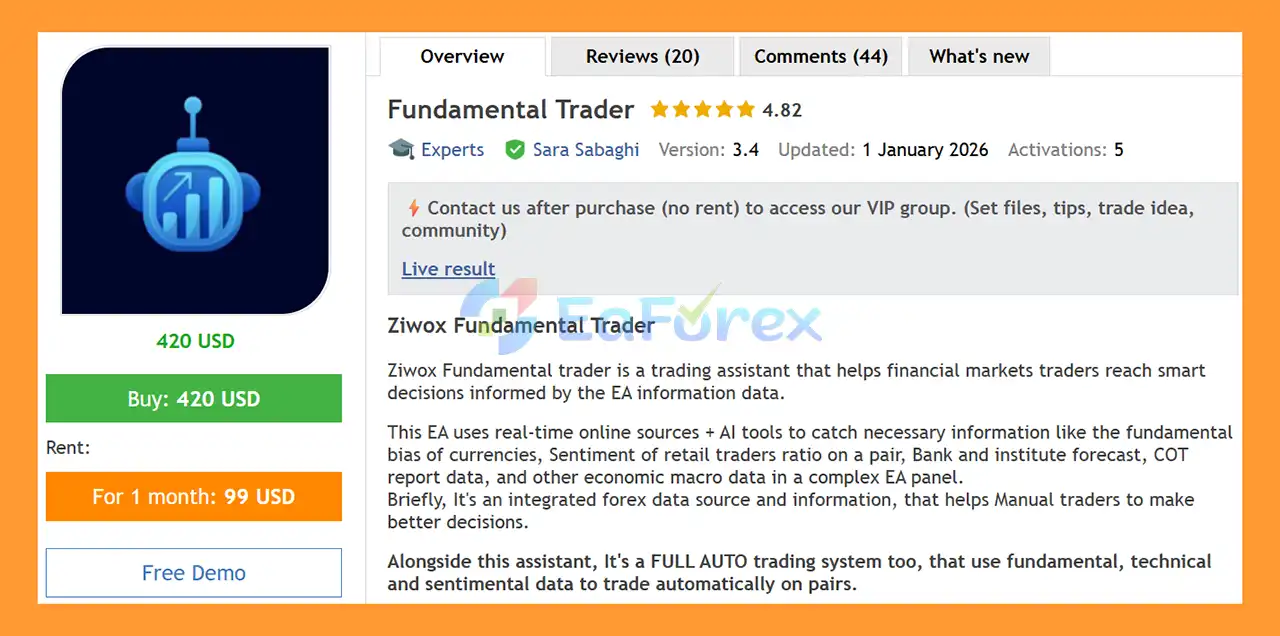 • Notable Products: Fundamental Trader MT4, Fundamental Hunter EA, Gold Extractor EA, Trend Scalp Pro MT4 and other advisors.