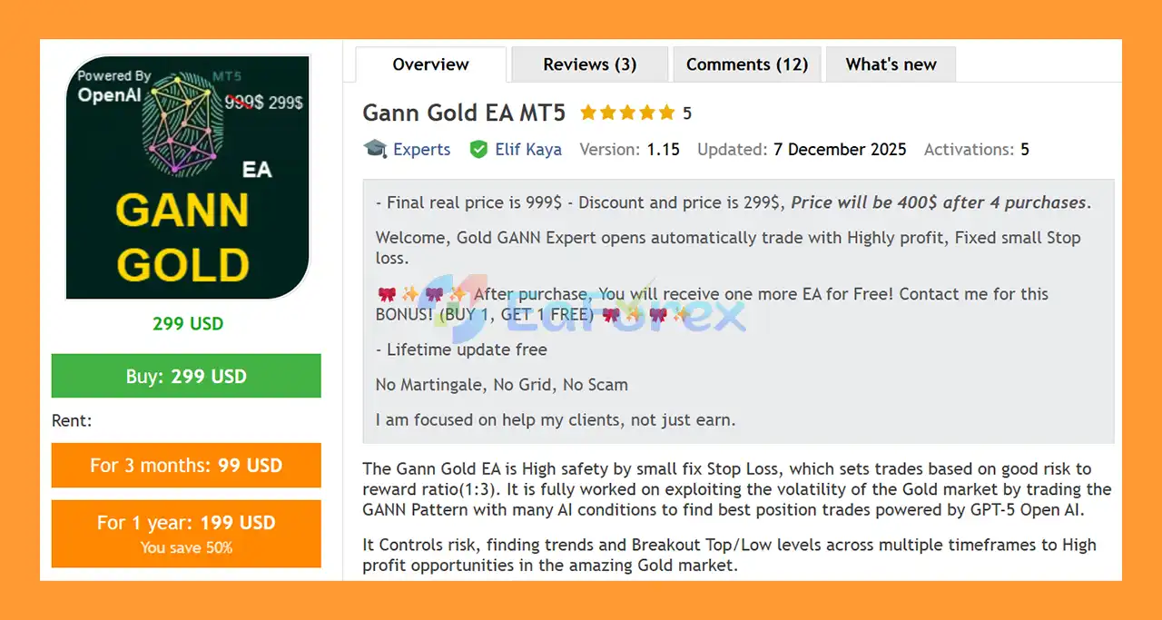 • Notable Products: Gann Gold EA MT5, Gold Trade Expert MT4, Gold Trade Expert MT5, Professor EA MT4, M1 Scalper Pro MT5 and other advisors.