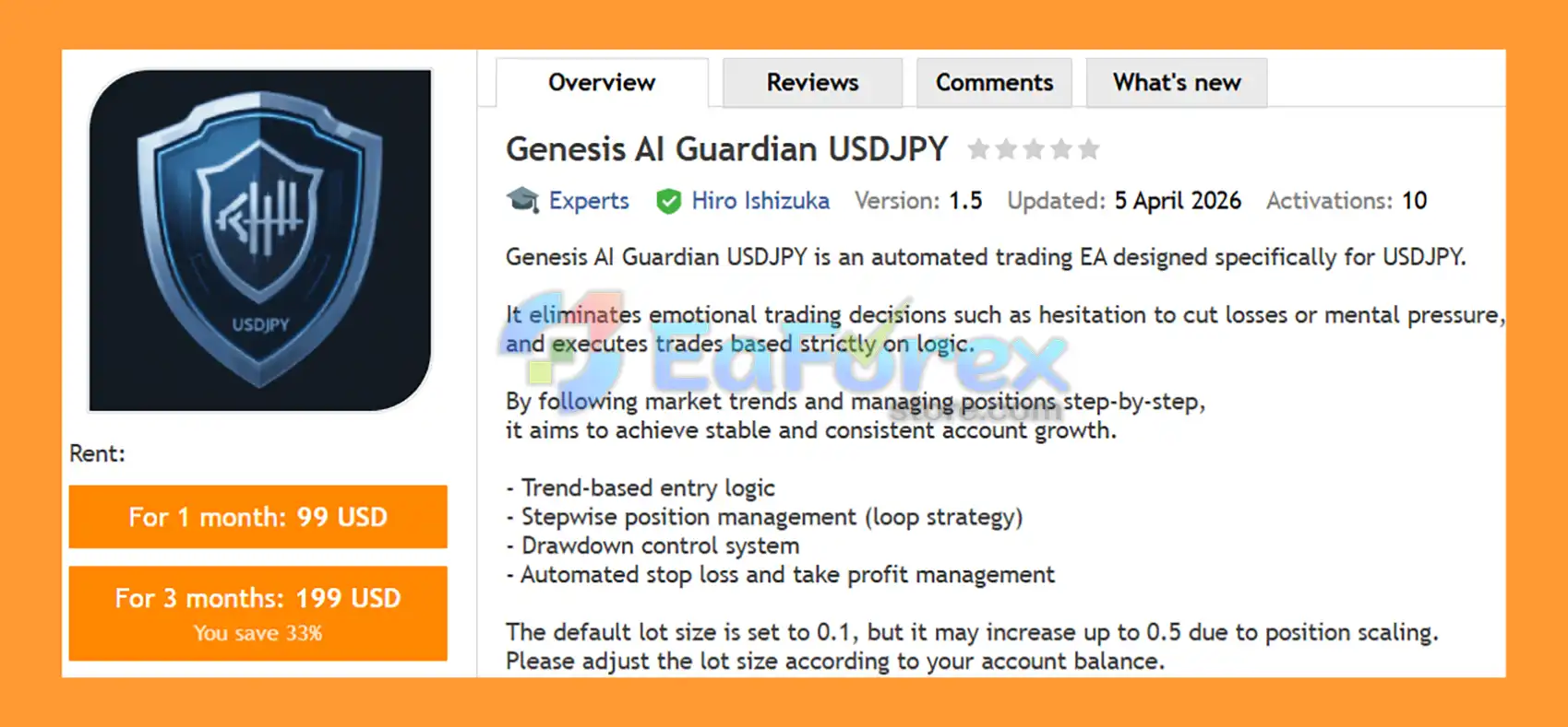• Notable Products: Genesis AI Guardian USDJPY MT4 and other advisors.