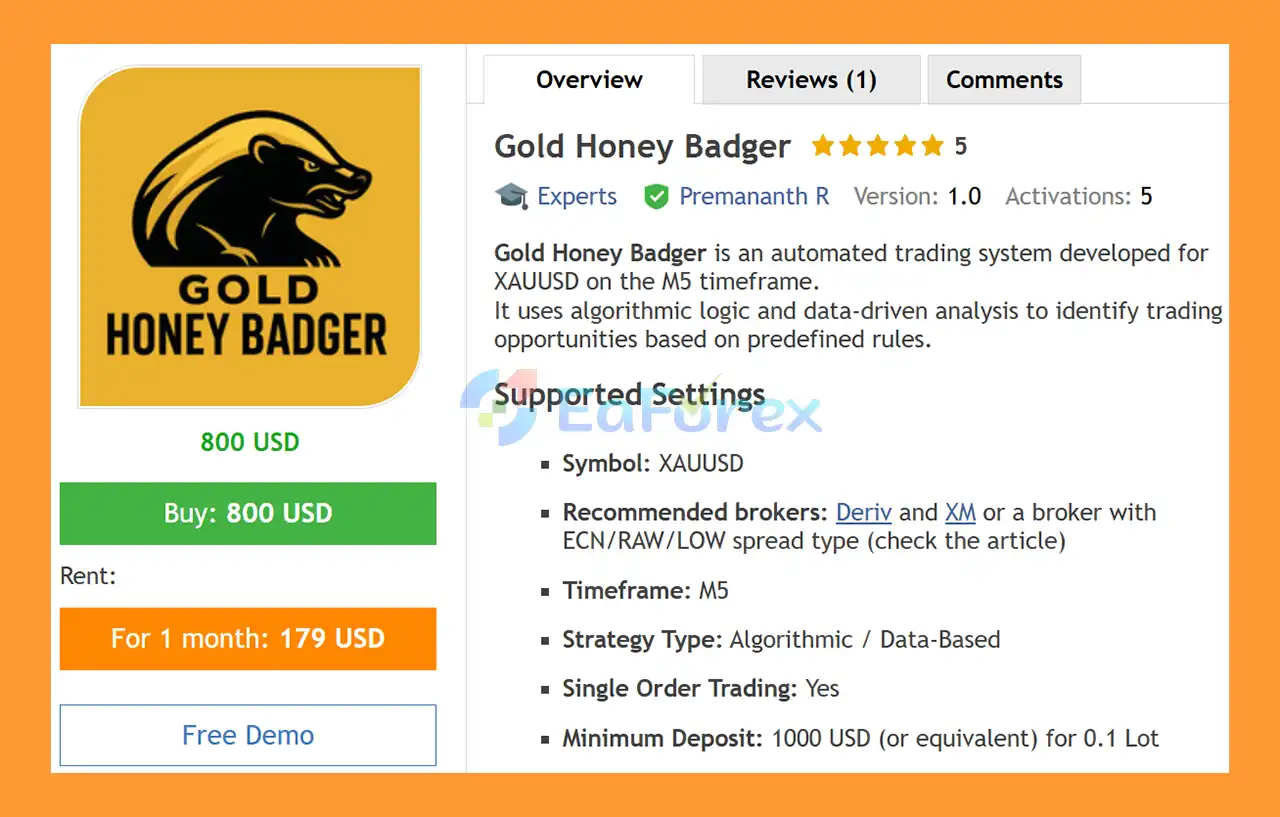 2. Is Gold Honey Badger EA MT5 designed only for gold trading?