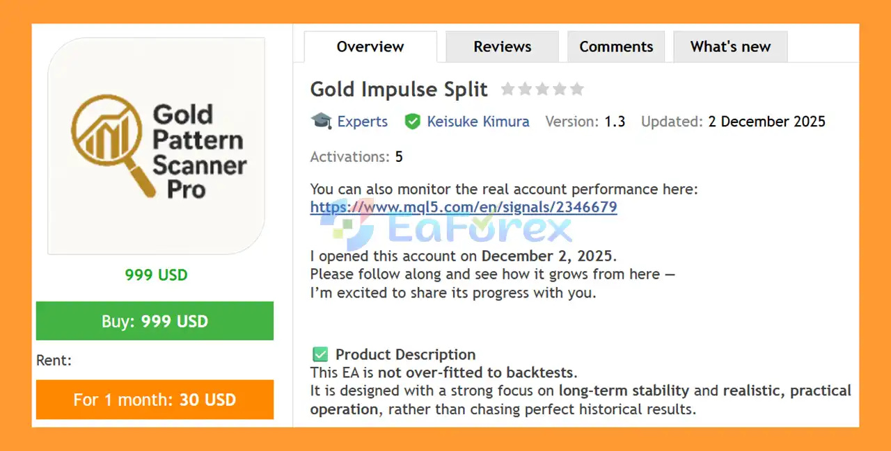 • Flagship Product: Gold Impulse Split EA MT4 is rated as the best performing product of the year.