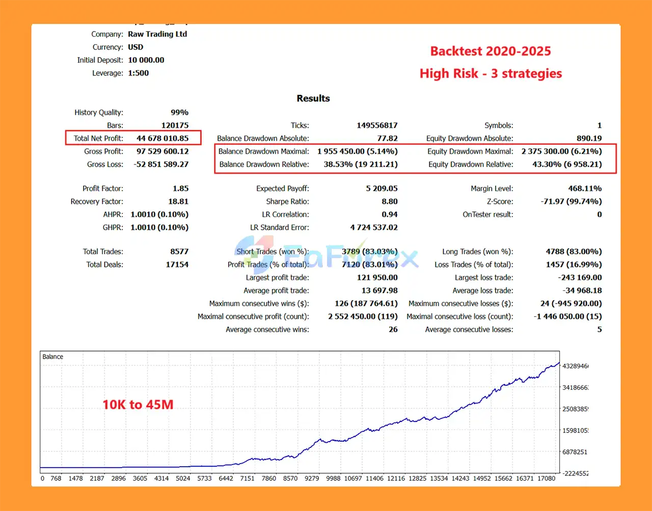 Very High Risk: $10,000 → $49.22M, Max Drawdown 4.59%, Win Rate 83%