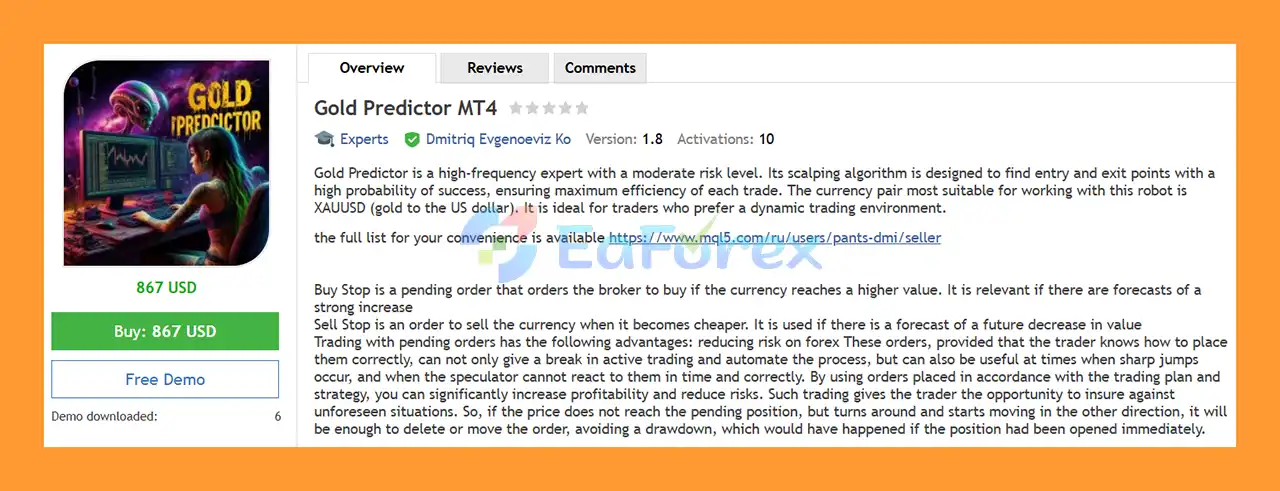• Notable Products: Gold Predictor MT4, Golden Harmony MT4Infinity Gold Impulse MT4, Golden Victry EA MT4, Pharaoh Gold MT4, Apex Gold MT4 and other advisors