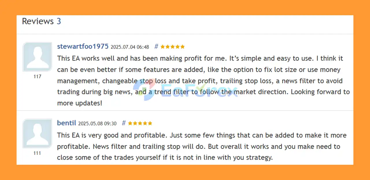 🔺Gold Trade Expert EA MT5 is highly appreciated by the MQL5 community for bringing stable and reliable profits. Below are 5 star reviews from users:
