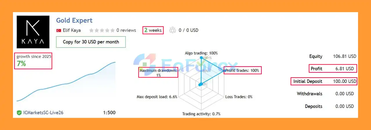 In recent signal results for Gold, an initial deposit of $100 achieved +7% growth over 2 consecutive weeks with a 100% win rate and a maximum drawdown of just 1%.