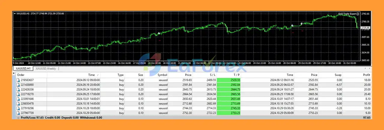 EA Gold Trade Expert MT5 trades the XAUUSD pair using a groundbreaking strategy and strict risk control, ensuring safe trades and consistent profits.