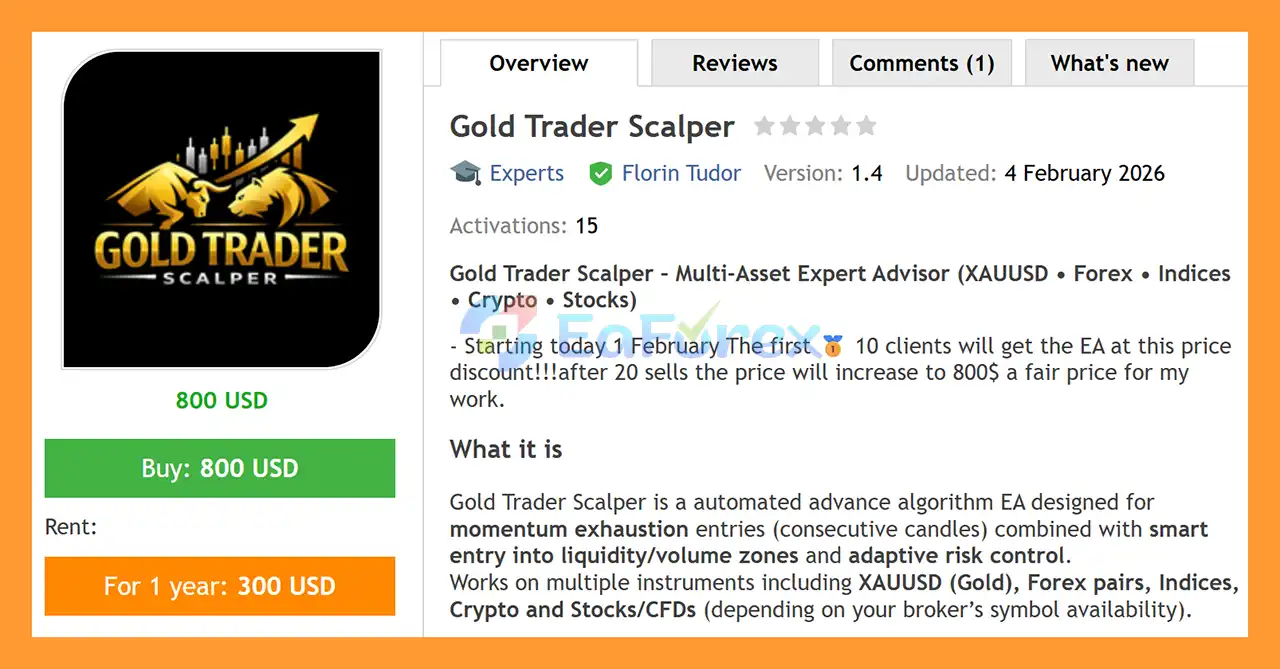 • Notable Products: Gold Trader Scalper EA, Queen of Gold Royal Scalper, Trader Scalper, Fx Gold Plus, Fx Trader Pro and other advisors.