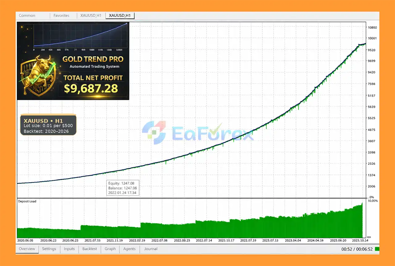 In summary, Gold TrendPro MT5 is a professional and disciplined gold trading EA for MetaTrader 5, specifically optimized for the XAUUSD pair on the H1 timeframe. By combining gold-specific trend logic, rule-based execution, and adaptive risk management, it delivers high-quality trend trades with controlled exposure and minimizes market noise. Without martingale or grid systems, and with a strong focus on long-term consistency and stability, Gold TrendPro MT5 is an excellent choice for traders seeking a reliable, emotionless, and gold-specific automated trading system, supported by an experienced developer and proven performance.