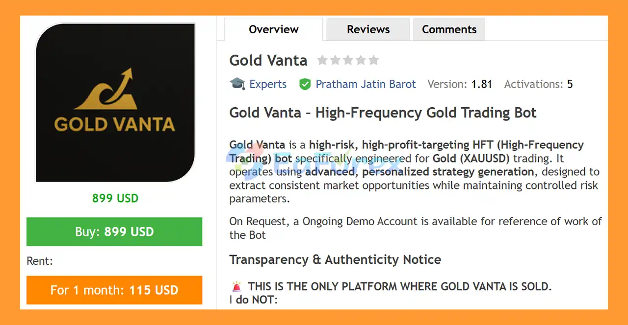• Notable Products: Gold Vanta, God Gold HFT Scalper EA, God Gold Martingale and other advisors.