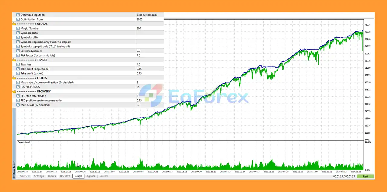 • Risk-conscious design: Recovery and drawdown filters minimize risk while maximizing profit potential.