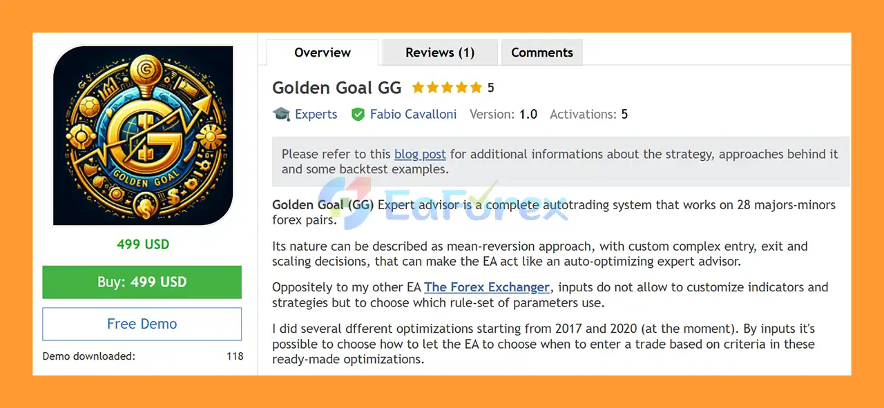 • Flagship Product: Golden Goal GG EA MT5 is rated as the best performing product of the year.