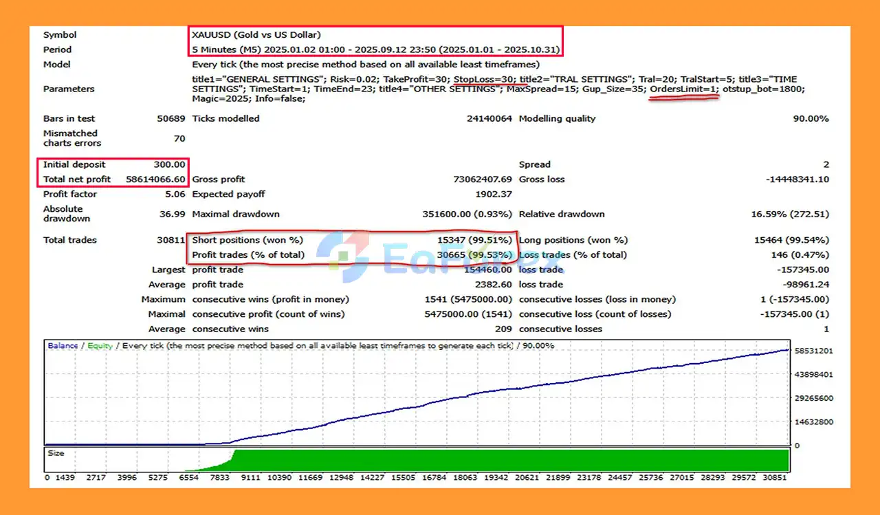 These numbers demonstrate the EA’s consistent and low-risk profitability.