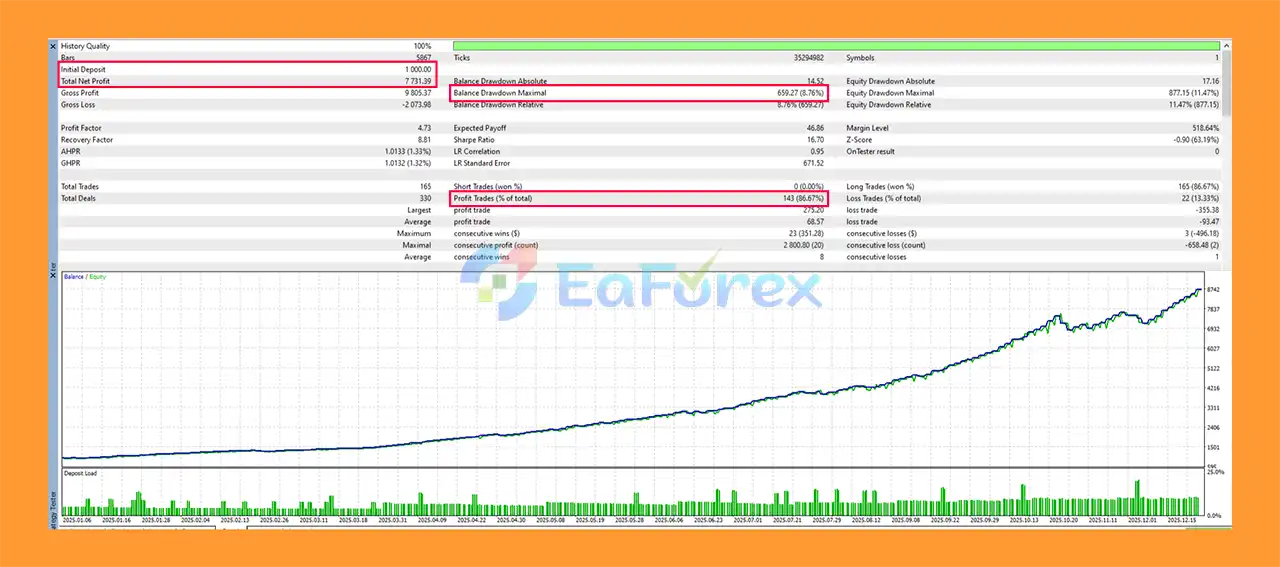 Yes. The EA includes prop firm-friendly features, such as daily drawdown protection that automatically closes trades and prevents new entries if the maximum daily loss limit is reached.