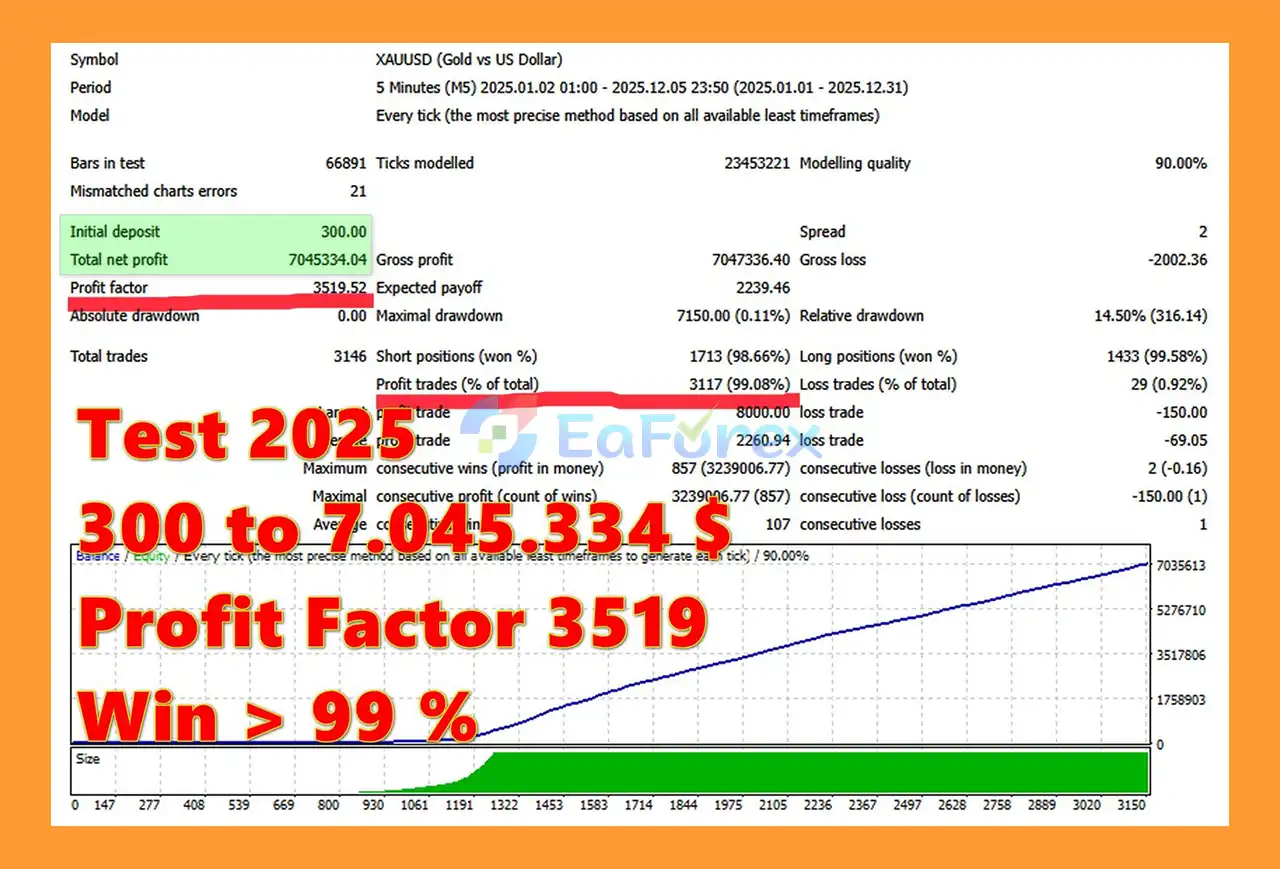 Backtests indicate high win rates, extremely low drawdown, and strong profit growth, suggesting a structured and disciplined approach to automated trading. However, like all trading systems, results may vary in live market conditions.