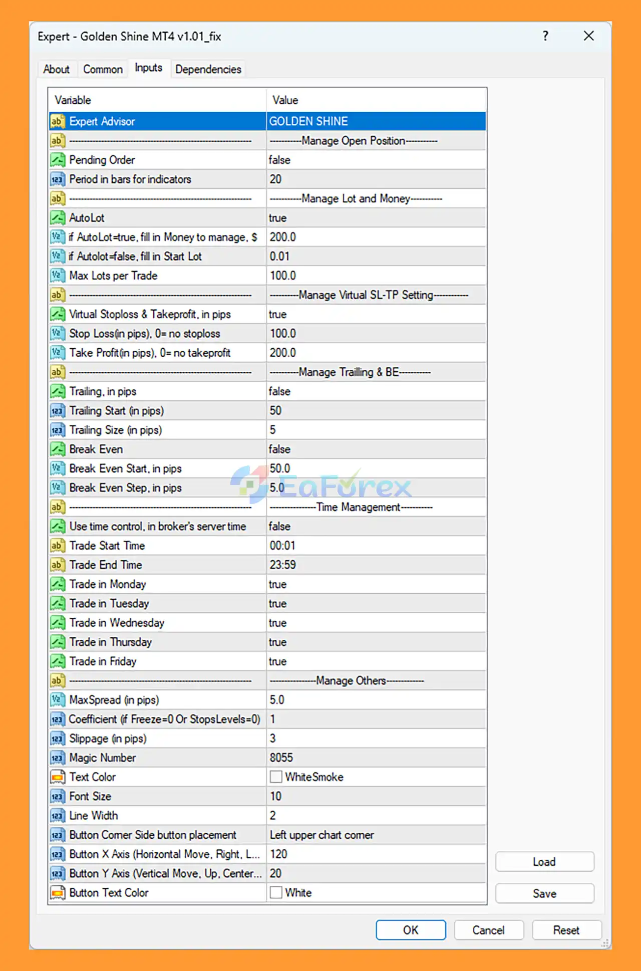 false00:0123:59true)➡️Golden Shine EA can trade continuously or within a specific time window.