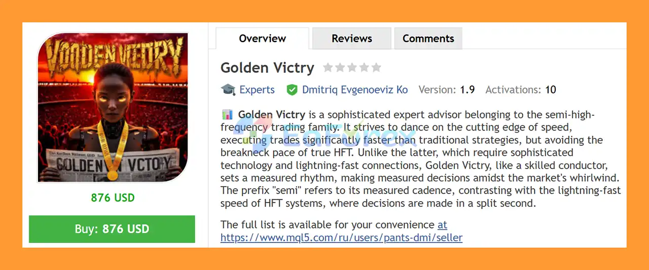 • Notable Products: Golden Victry MT4, Infinity Gold Impulse MT4, Pharaoh Gold EA, Apex Gold MT4, Gold Angel EA, Gold Lady EA and other advisors