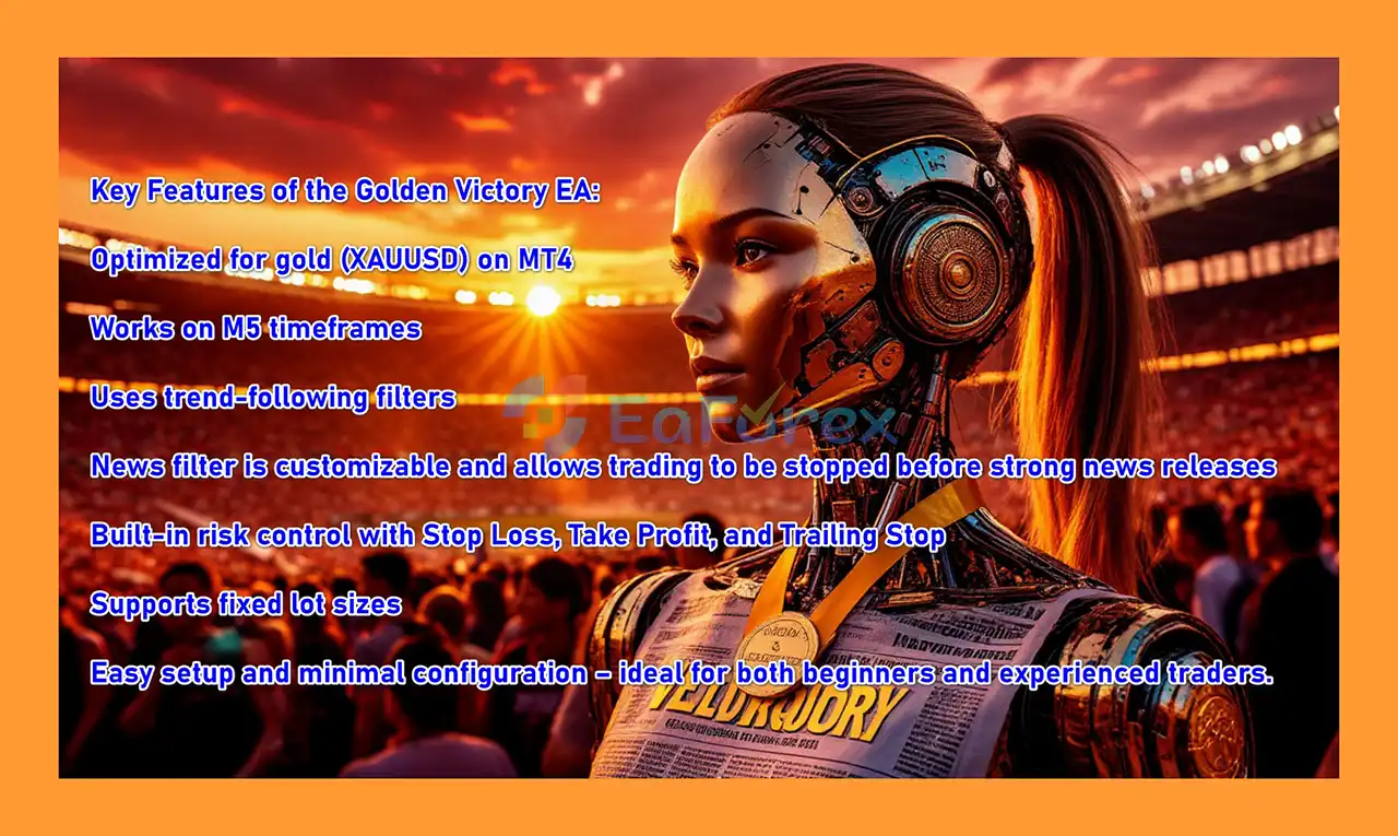 Golden Victry EA MT4 is a trading robot for XAU/USD, commodities and indices, providing fast, accurate automated trading and risk management for stable profits.