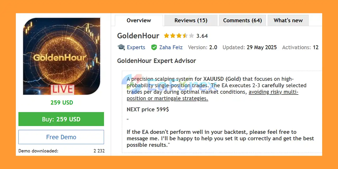 In summary, GoldenHour EA MT5 is the ultimate scalping solution for gold traders who want safety, accuracy, and consistency. With its advanced session-based strategies, smart risk controls, and no use of dangerous methods, this EA is built for traders seeking steady growth with controlled exposure. Whether you are a beginner or an advanced trader, GoldenHour EA MT5 provides a professional and reliable approach to trading XAUUSD with confidence.