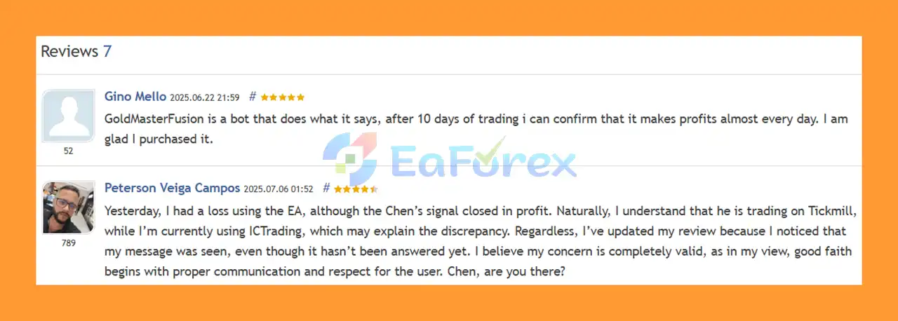 🔺GoldMasterFusion MT5 is highly appreciated by the MQL5 community for bringing stable and reliable profits. Below are 5 star reviews from users: