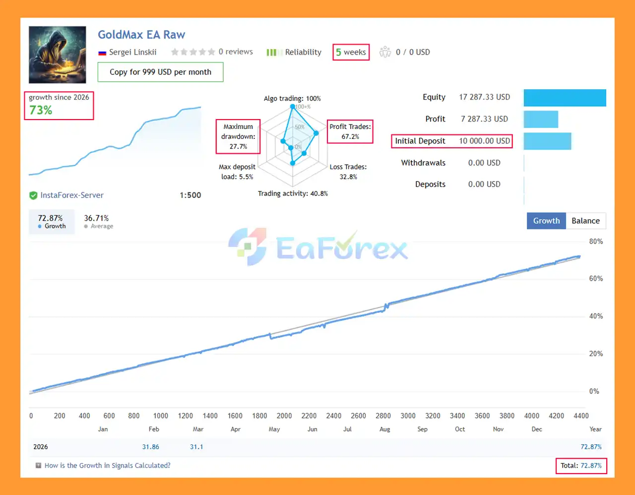 • Notable Products: GoldMax EA 5 MT5, GoldMax EA 4 MT4, BTCmax EA MT5, FXmax EA MT5, FXmax EA MT4 and others.