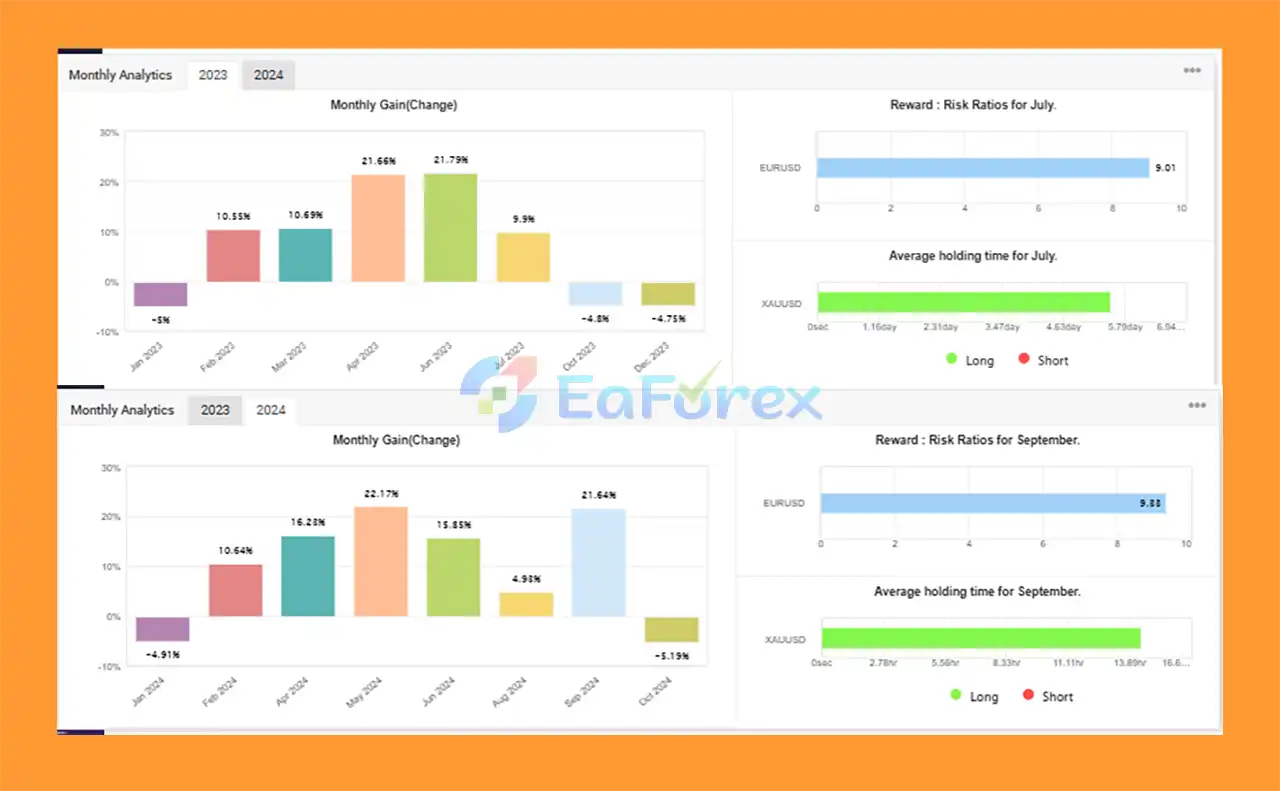 The EA is optimized for EURUSD, GBPUSD, USDJPY, and XAUUSD (Gold), providing traders with reliable swing trading opportunities on both Forex majors and gold.