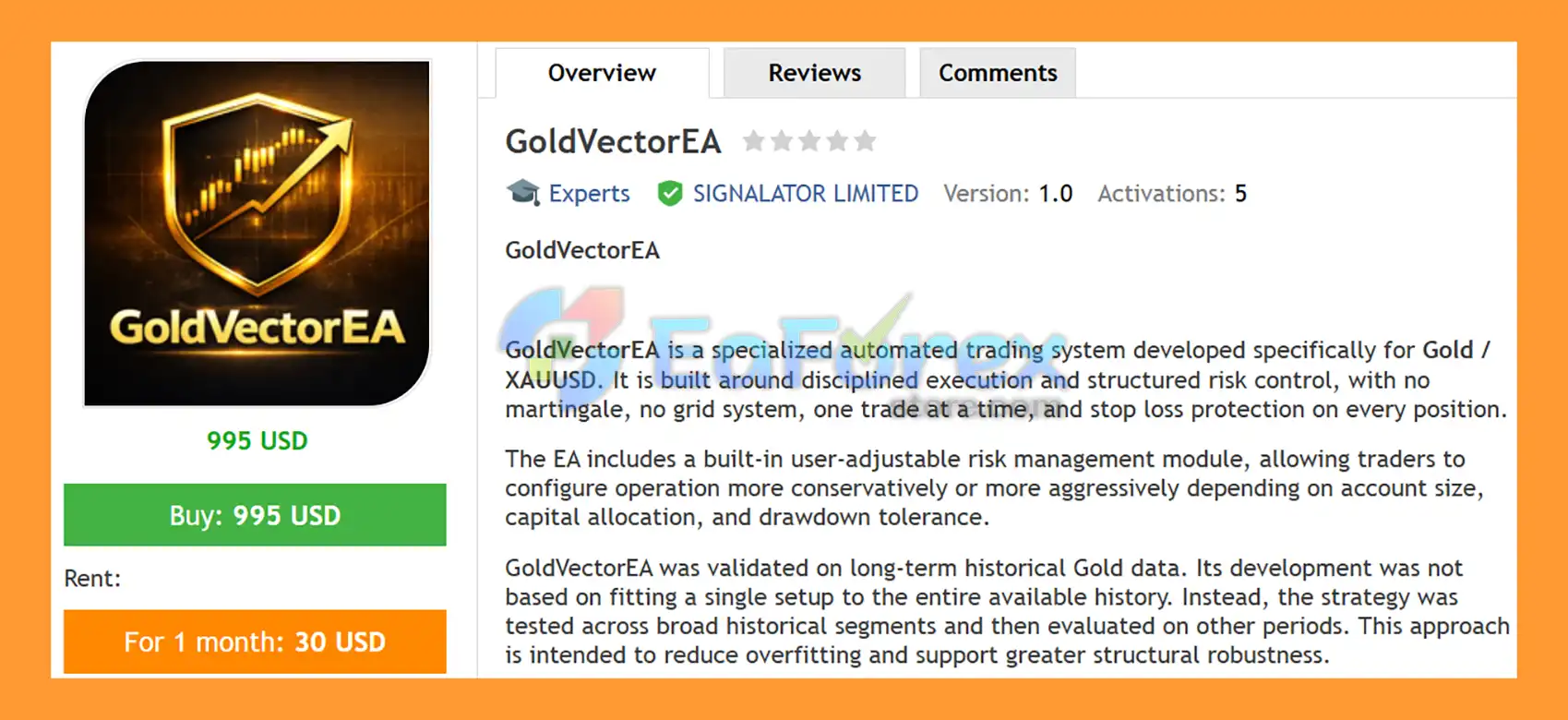 • Notable Products: GoldVectorEA MT4 and other advisors.