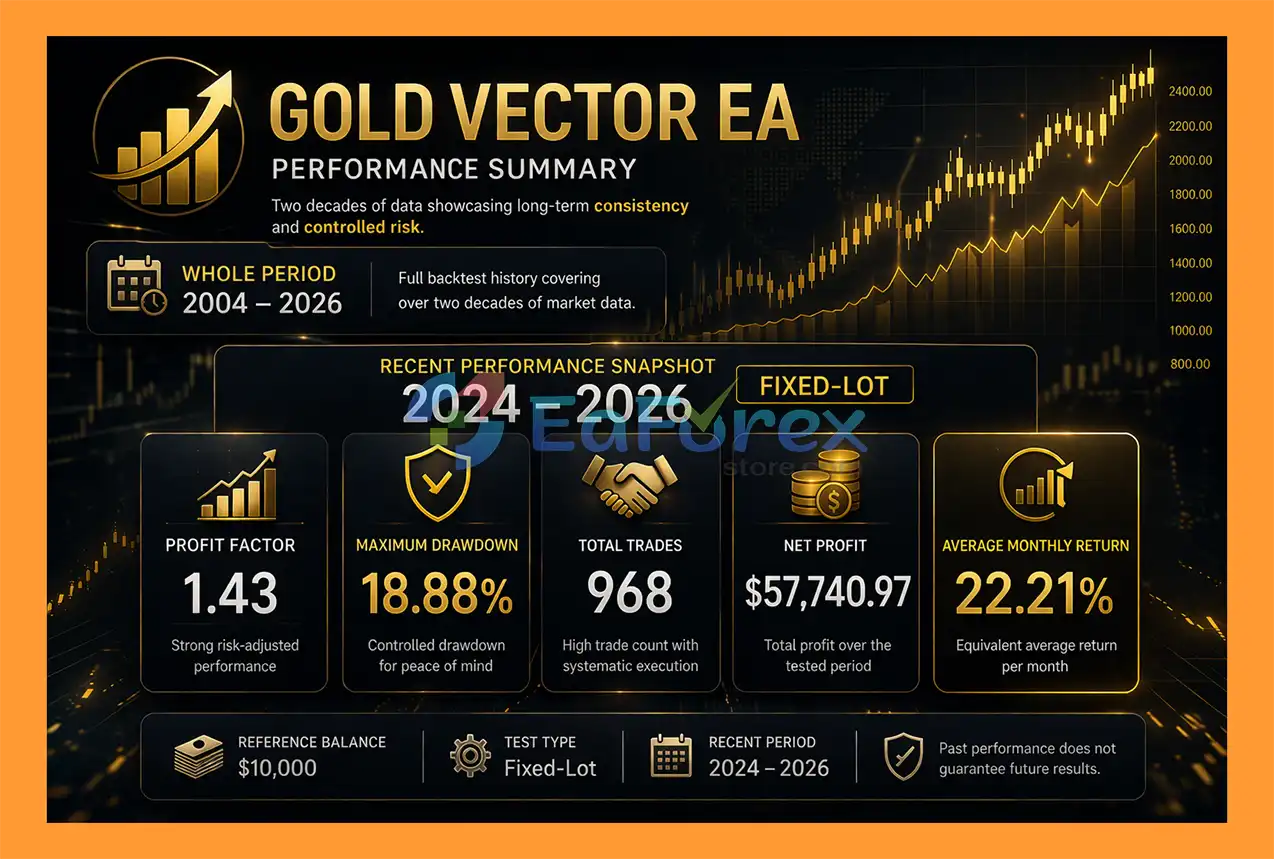 GoldVectorEA MT4 performs best in low-spread, ECN or raw spread environments with stable execution, where slippage and trading costs are minimized.