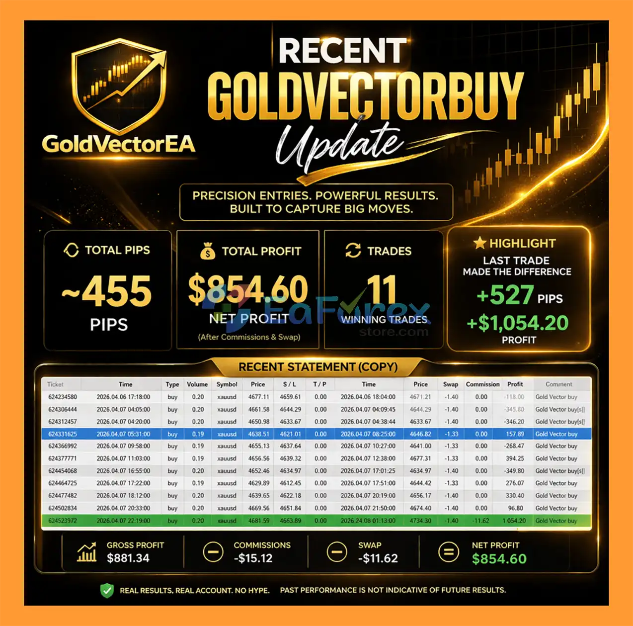In summary, GoldVectorEA MT4 is a professional and risk-focused automated trading system designed exclusively for XAUUSD (Gold), prioritizing capital protection, disciplined execution, and long-term stability over high-risk trading approaches. By avoiding martingale and grid strategies and using a strict one-trade-at-a-time logic with mandatory stop-loss protection, it ensures controlled exposure in all market conditions. With adaptive risk management, ECN optimization, and broker-aware execution, GoldVectorEA MT4 delivers a structured and conservative trading solution tailored for traders seeking consistent performance and reduced drawdown in Gold trading.