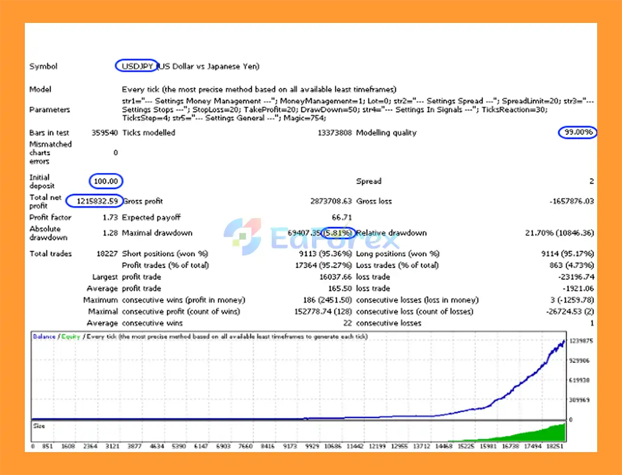 The EA can also be used on other currency pairs depending on broker conditions.