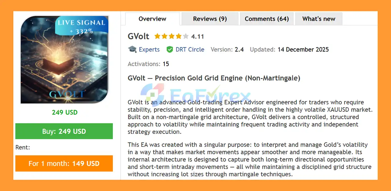 • Jbzeng (2025.12.17): “I have used the GVolt for two weeks. It performed very good with low risks and good profits. It is a reliable robot although sometimes the orders may last for a long time, they always closed with good profits.”