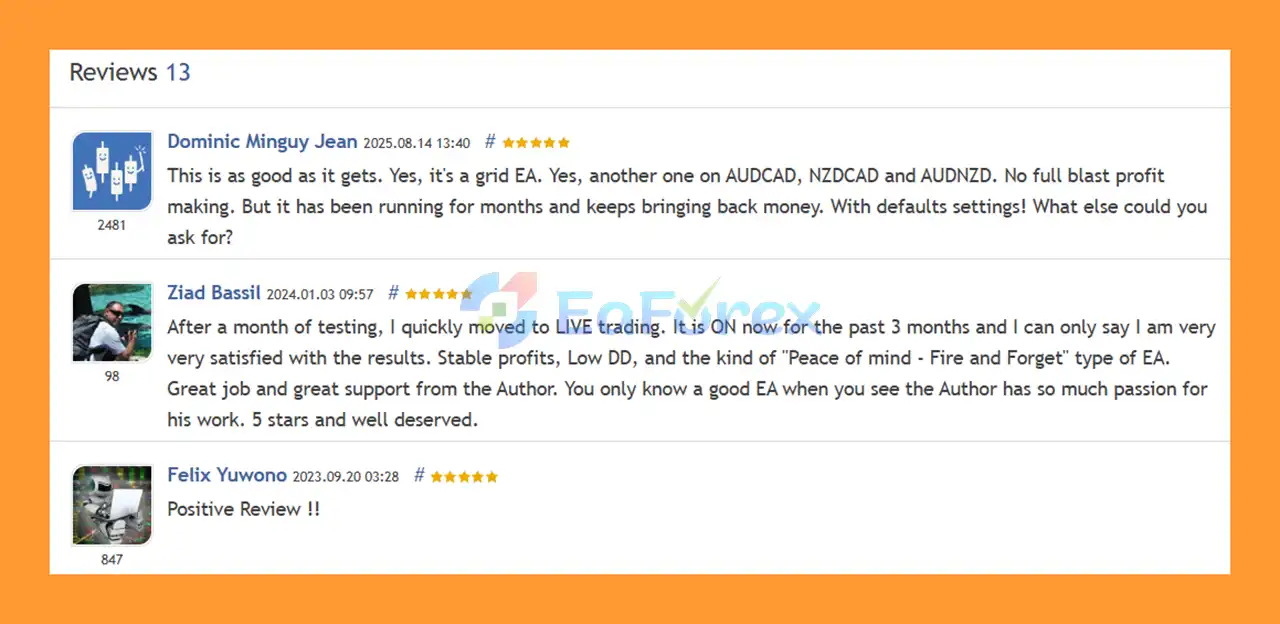 🔻Harmonizer EA MT5 is highly appreciated by the MQL5 community for bringing stable and reliable profits. Below are 5 star reviews from users:
