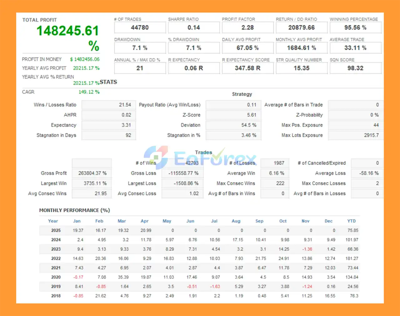 - Average Monthly Profit:Â 62.79%