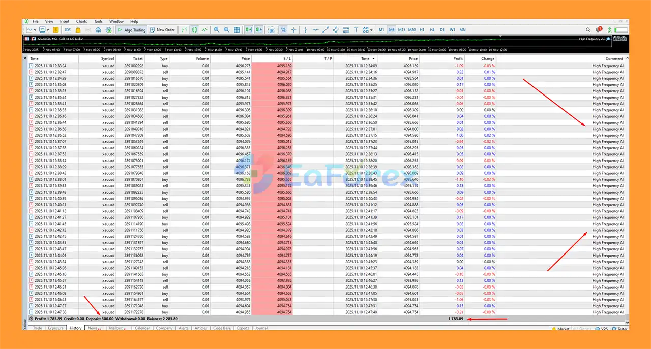 High Frequency AI EA Trading Results