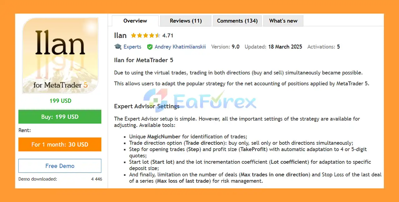 • Notable Products: Ilan MT5, Ilan MT4, Market Screener EA and others.